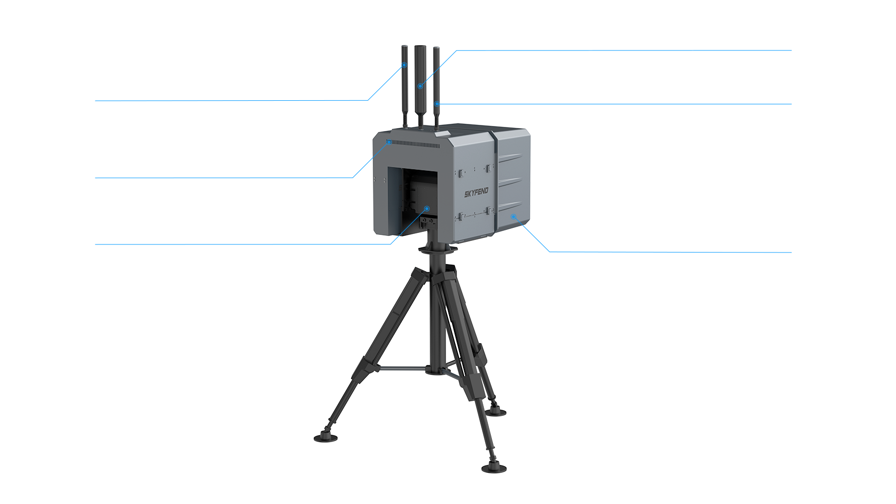 系统可基于实时侦察结果引导干扰与 GNSS 诱骗打击,在高对抗电磁环境下重点强化对具备跳频、扩频特性无人机的压制能力,同时支持固定部署与车载机动部署,满足全天候、多场景反无人机作战需求。