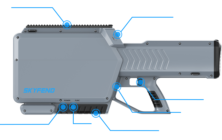 Hunter is a multifunctional handheld Counter-UAS jammer designed to effectively detect, identify, locate, and mitigatedrone threats. It provides robust countermeasure capabilities against most drone types and models while simultaneously disrupting the flight control and navigation signals of multiple UAVs.