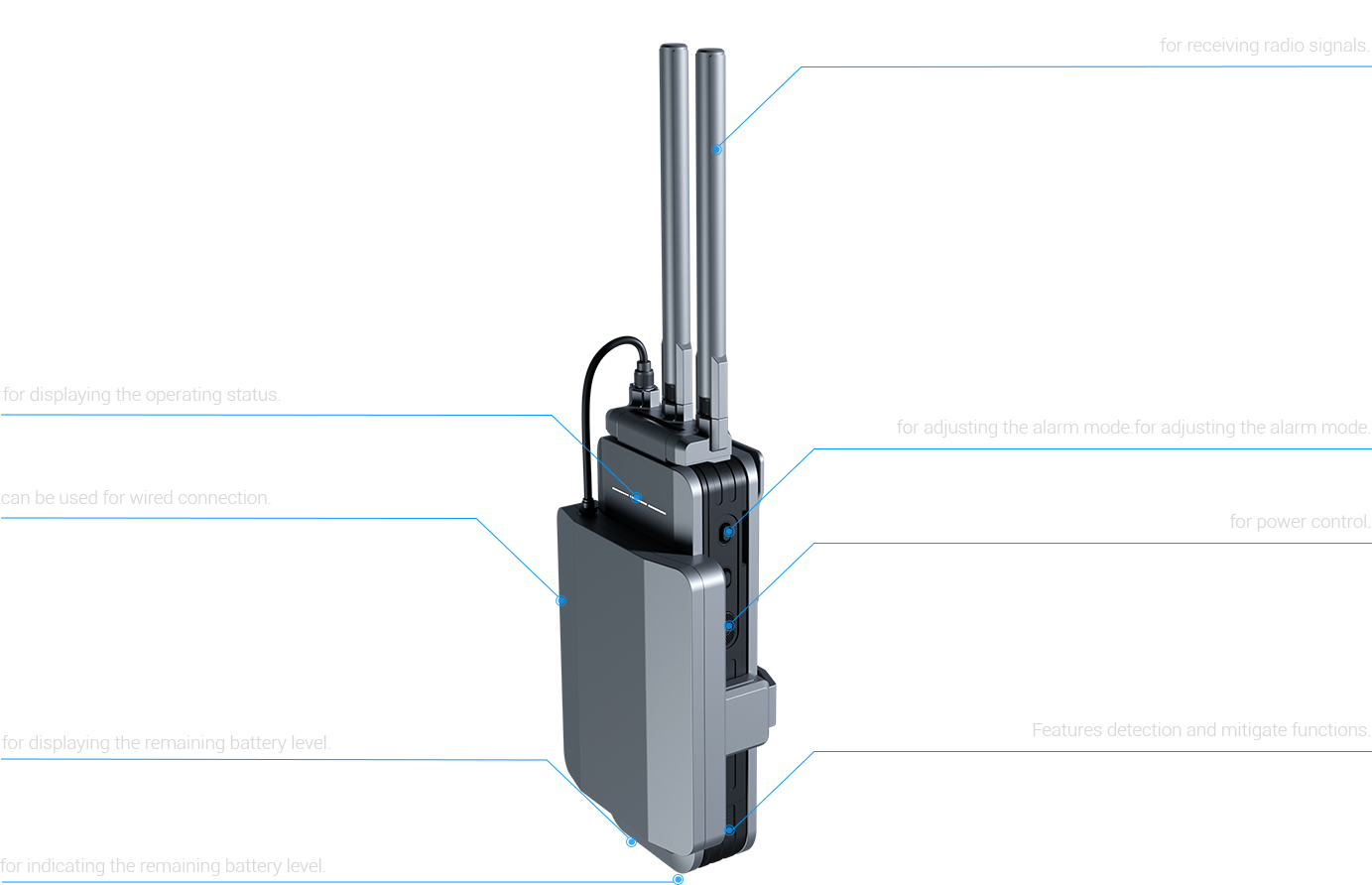 It supports a wide range of drone types, including mainstream commercial platforms such as DJI and Autel, as well as custom-built FPV drones and large multirotor UAVs. The system's automated threat detection capability enables timely identification of unauthorized drones. Upon detection, users are immediately alerted via acoustic, visual, and vibration notifications—maximizing responsiveness and enhancing protected area security.